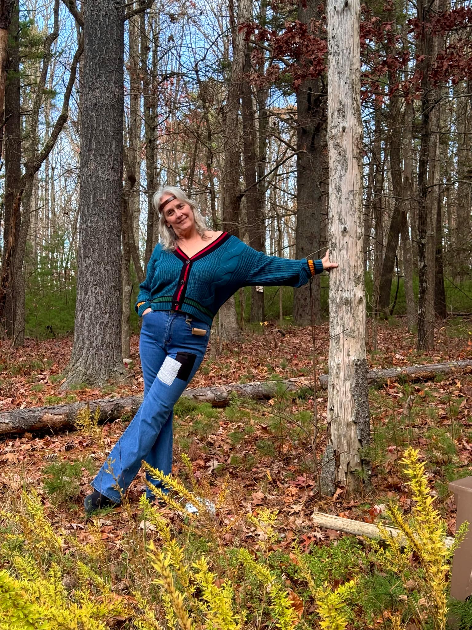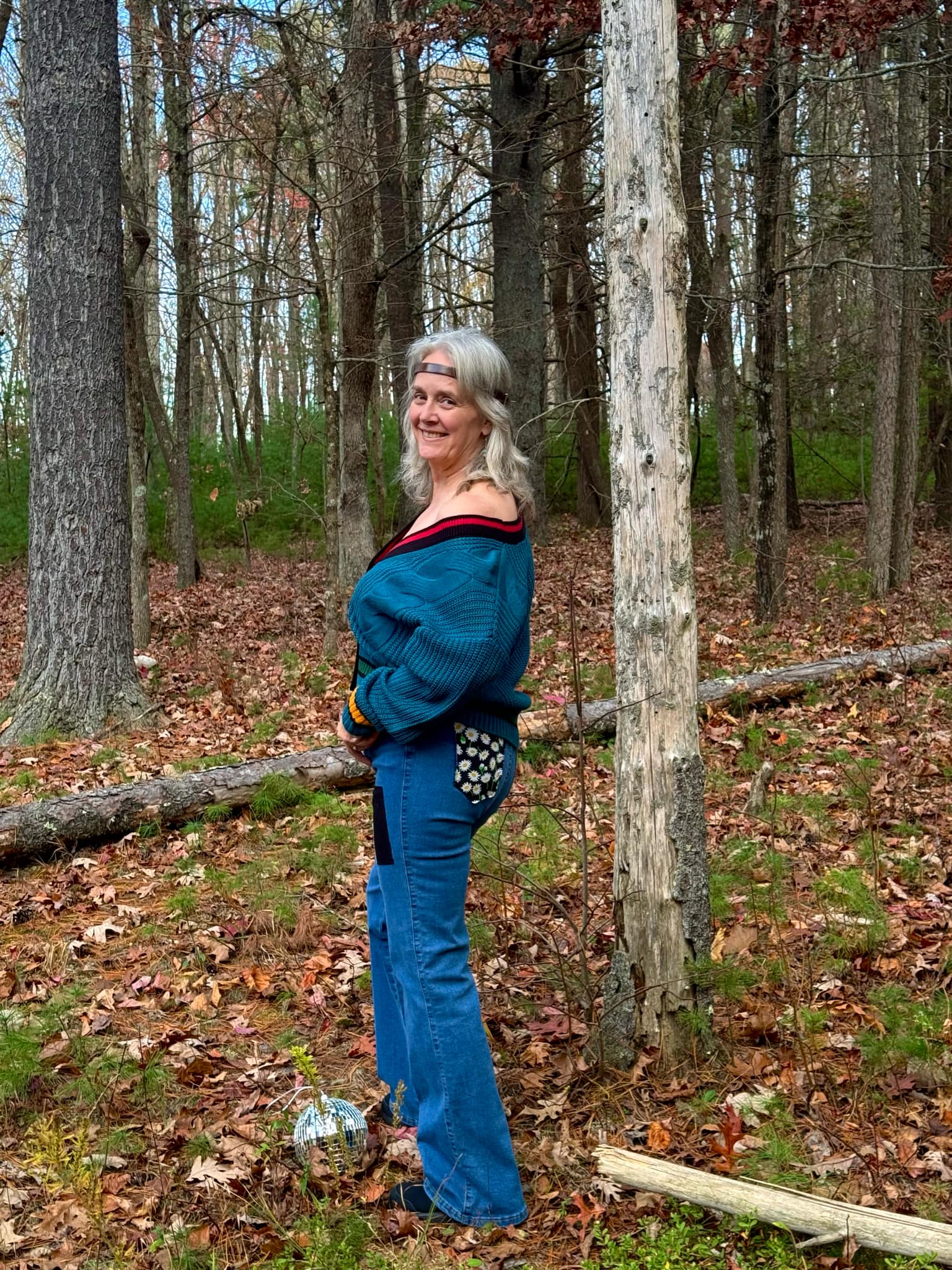 These jeans are one of a kind with black and checkered patches on the front and a daisy print pocket patch and daisy print heart patch on the pockets. They're stretchy material and very comfy. High rise pants. Hand sewn patches done by Cass. Jeans are Blue Turtle brand.