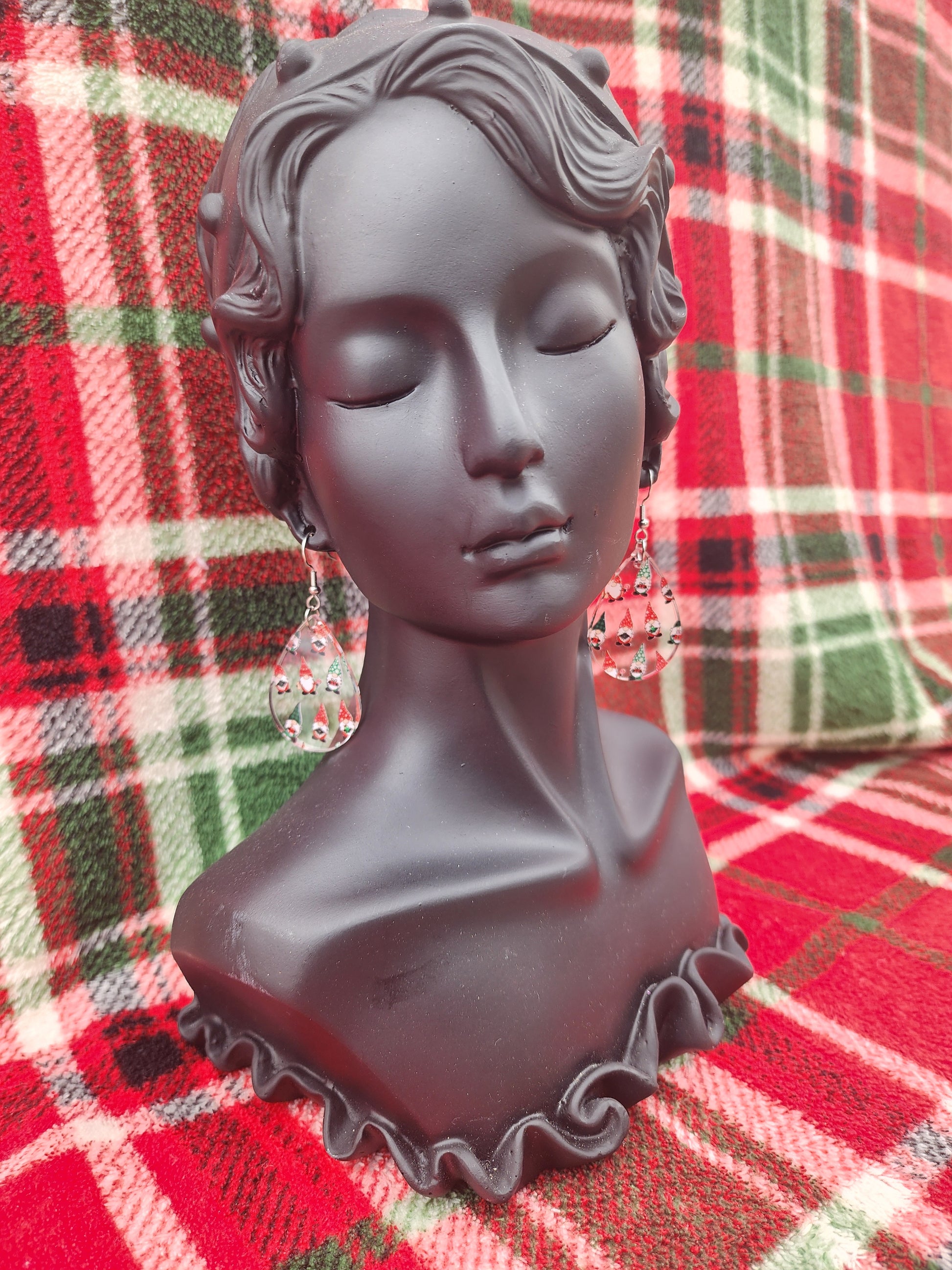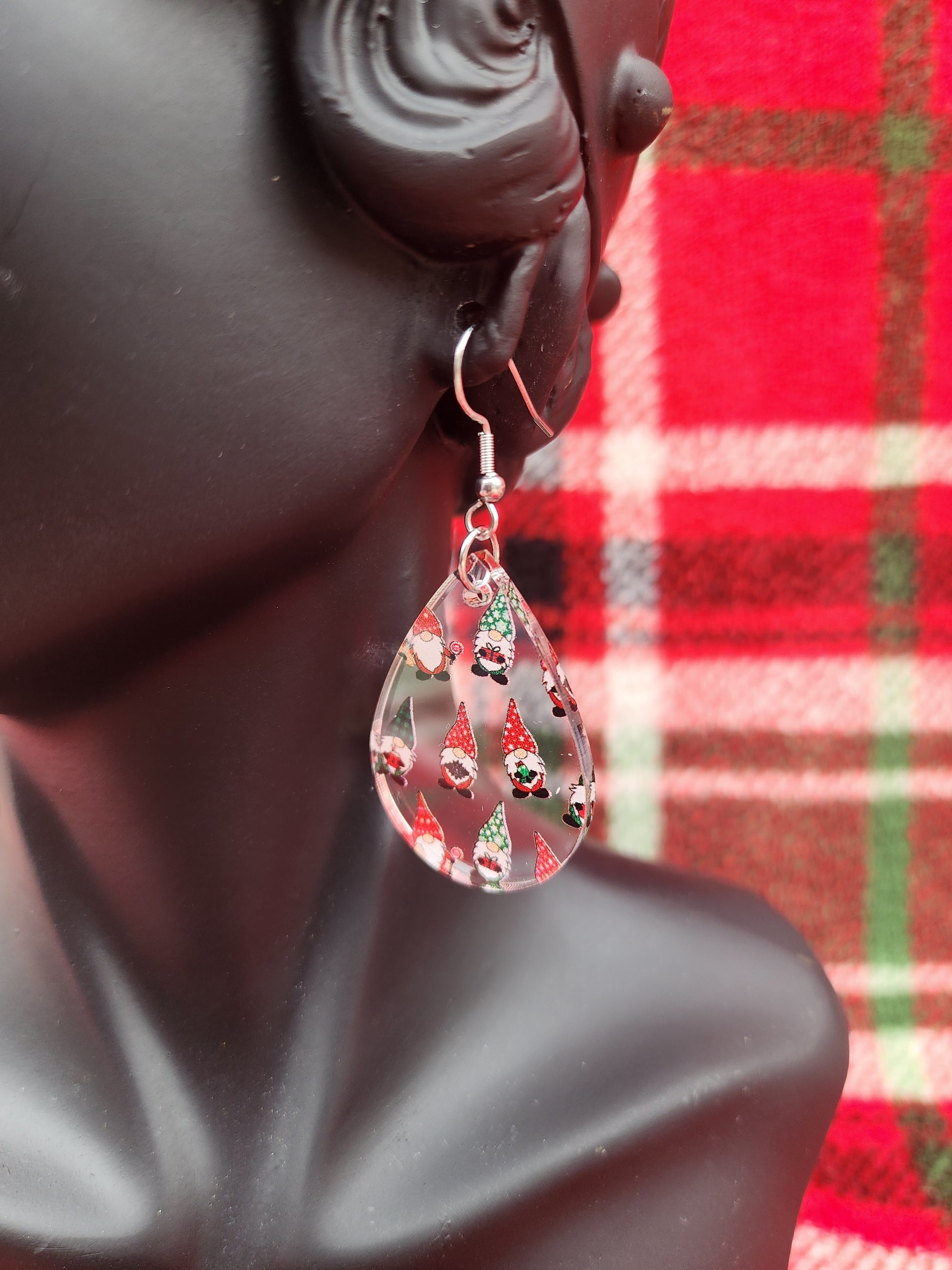 These lightweight acrylic earrings are so precious for the Christmas season. They're clear acrylic with precious little gnomes in festive colors. *image is on both sides.* They dangle and are approximately 2". Handmade by "A Glamper's Creations".