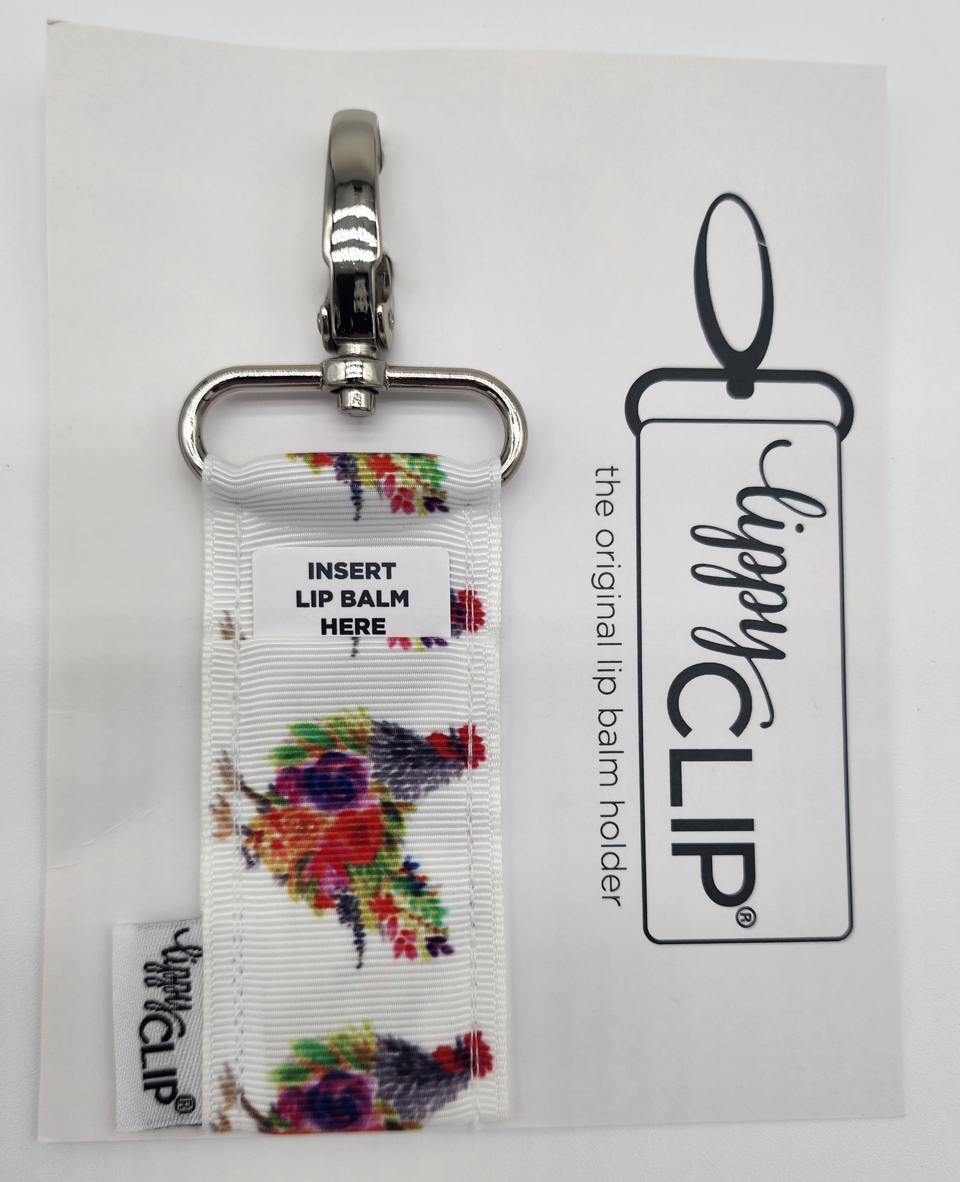 This LippyClip features a pattern with chickens made of pretty flowers.