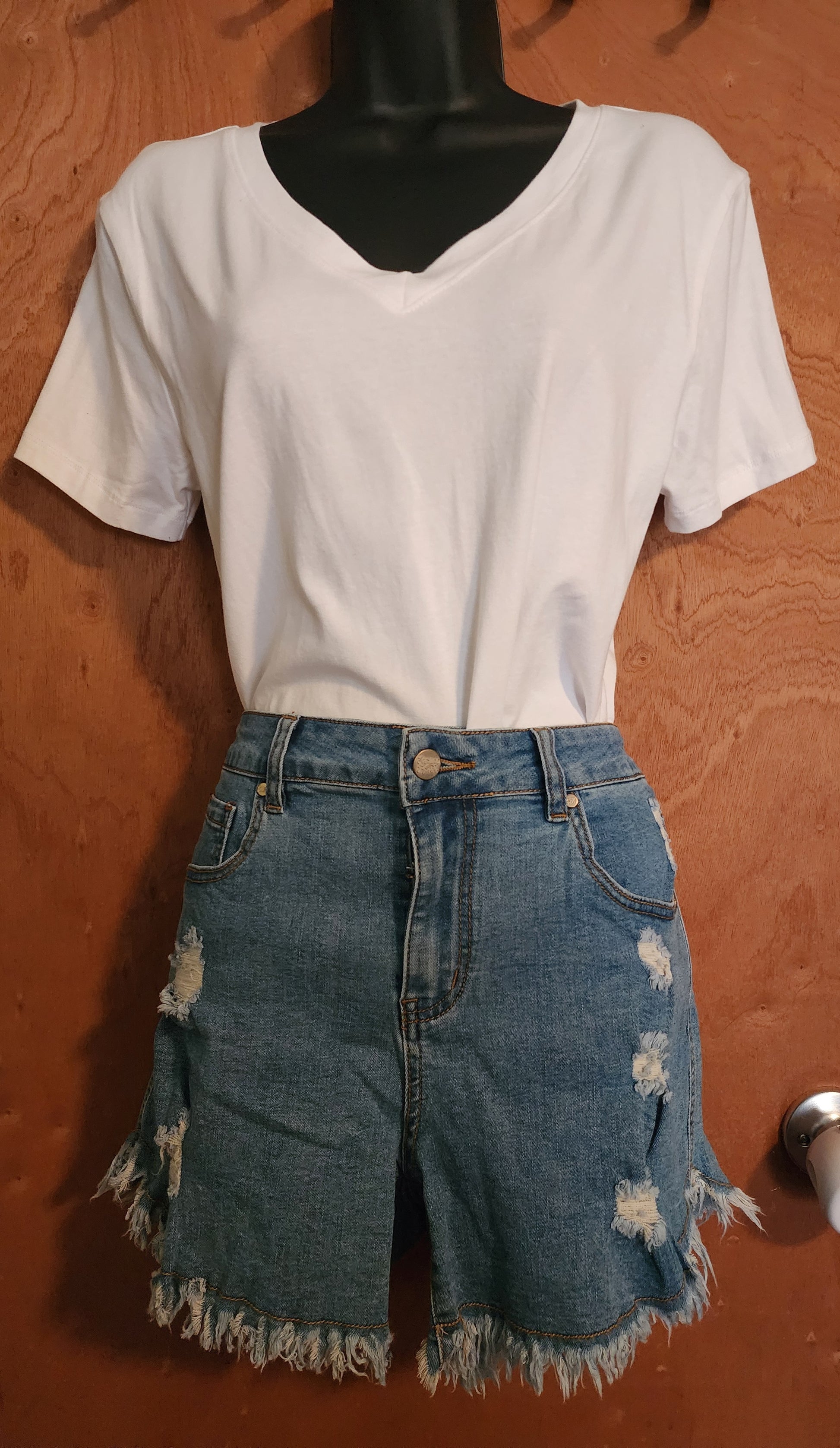 These shorts are super cute with rips in them and distressing at the bottom. Excellent summer look that would be perfect for a festival.