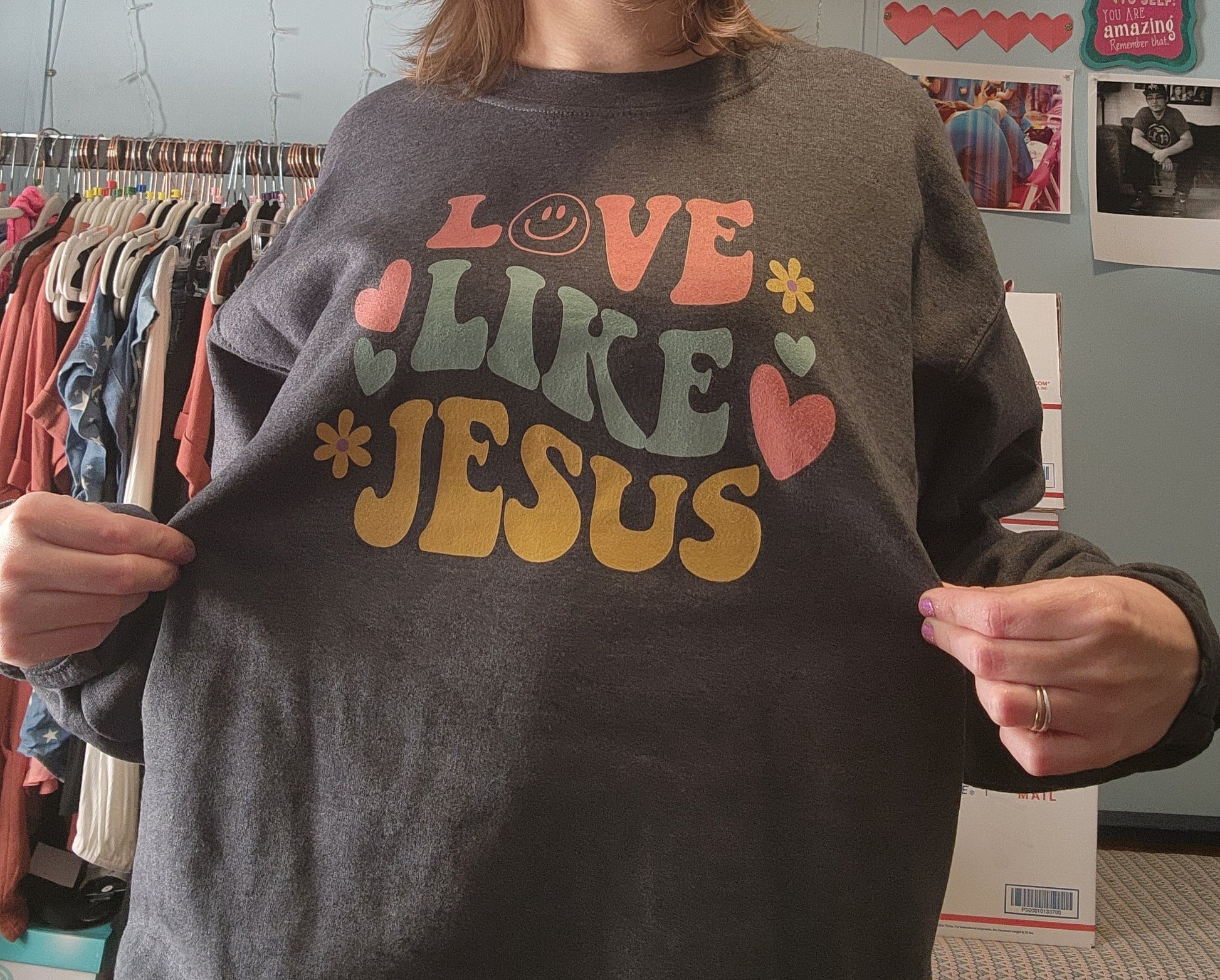 Screenprinted on Gilden, this is one of the softest sweatshirts you will ever own! Such a simple but beautiful message is portrayed through this sweatshirt. This is the one you'll be grabbing every chance you get during chilly season. 50% cotton, 50% polyester.