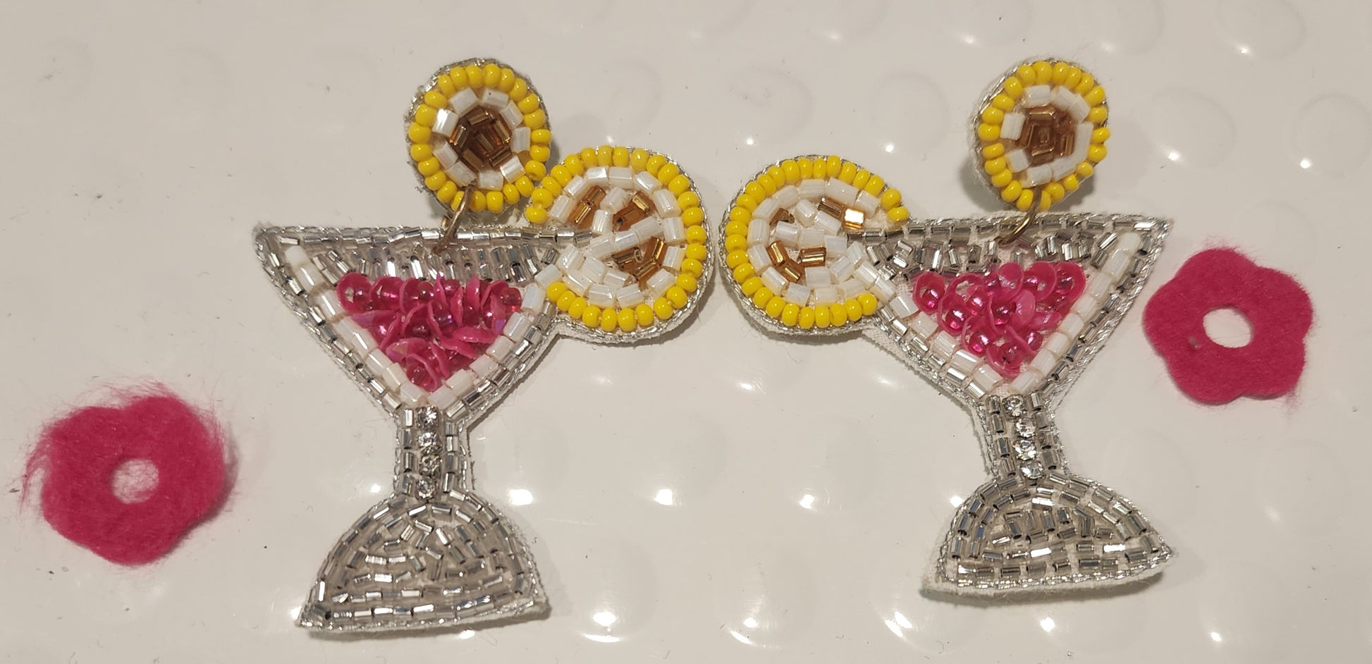 These earrings are fun for summer. They are tiny martini glasses with seed beads. They're approximately 2 1/2" long.