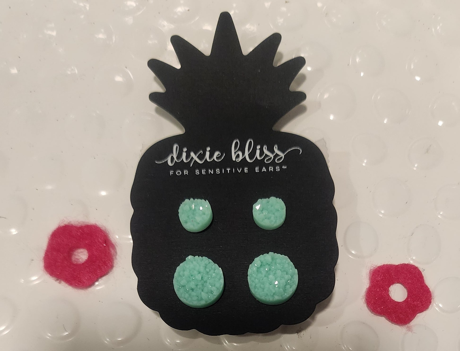 These matching mint green druzy earrings are perfect for a mother daughter duo, aunt and niece, grandma and grand-daughter, or just someone with two sets of earring holes that wants a match. They are regular studs on the back. So pretty.