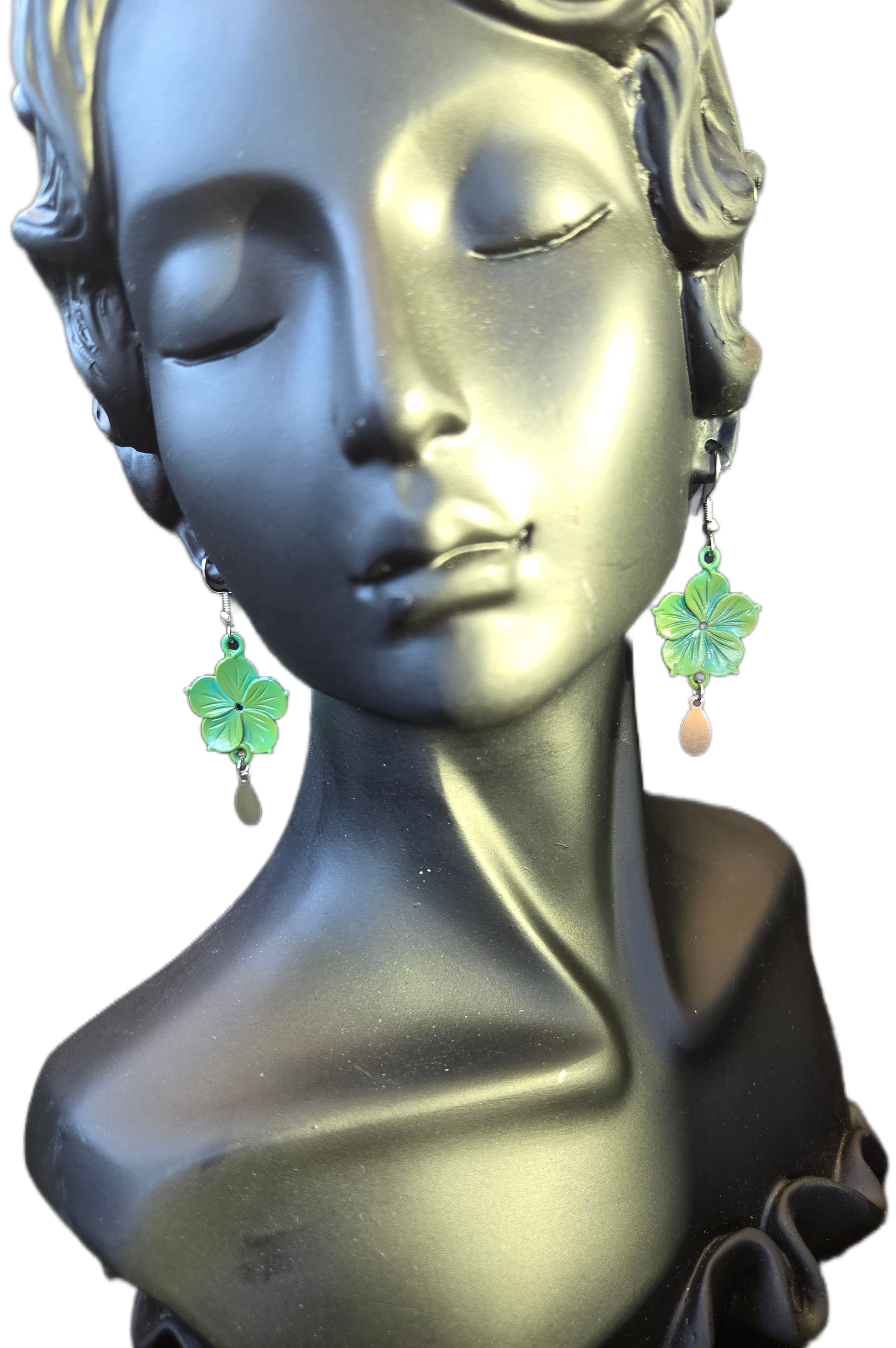 These beautiful earrings are handmade and done in a beautiful patina all by hand. They dangle and are approximately 2" long. So pretty and unique!