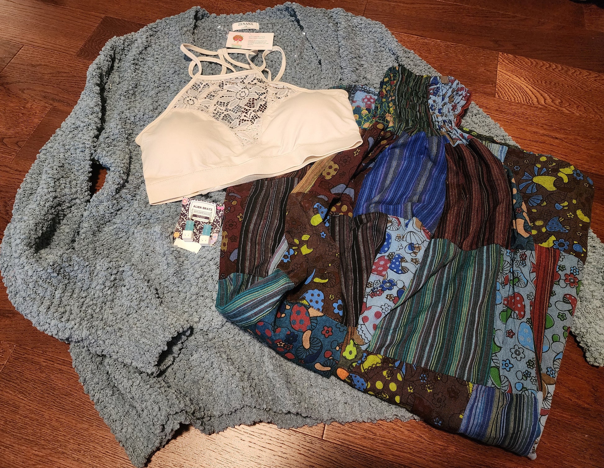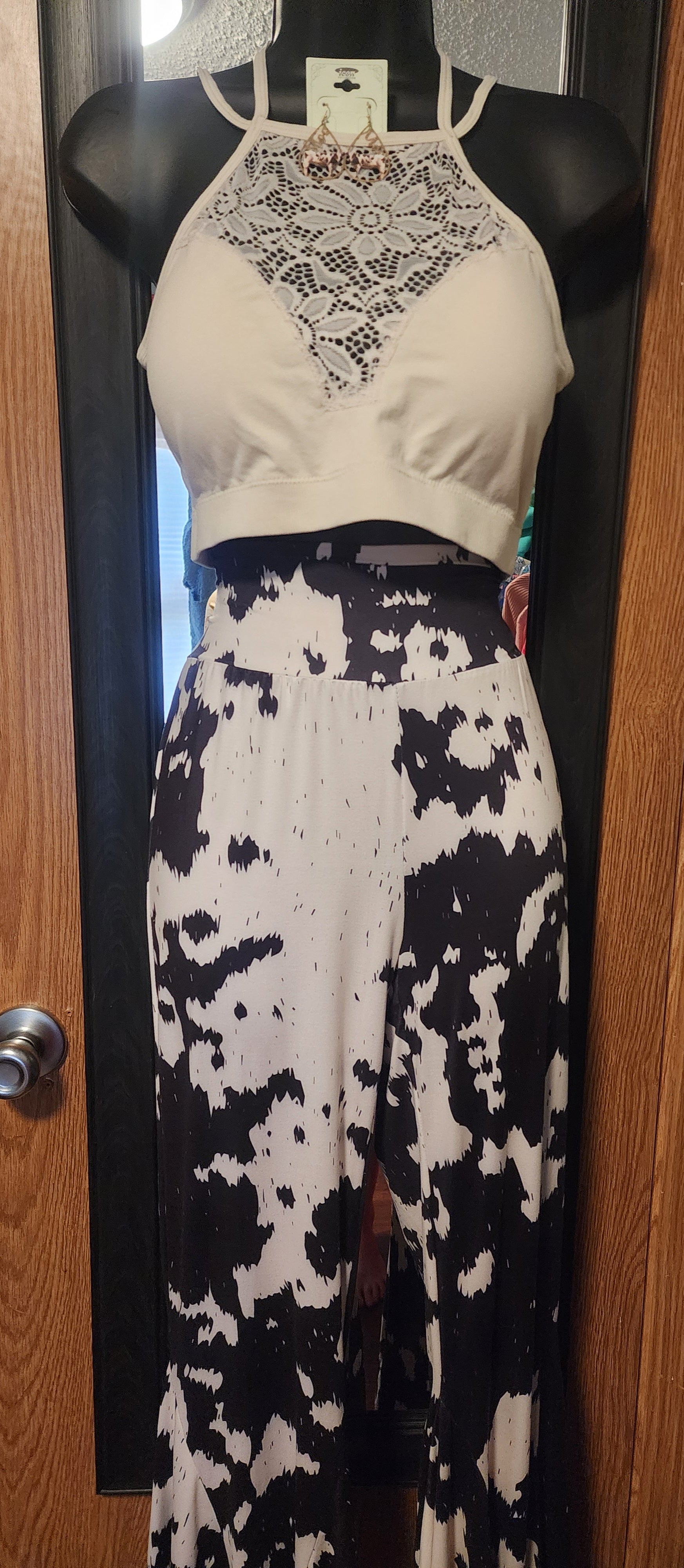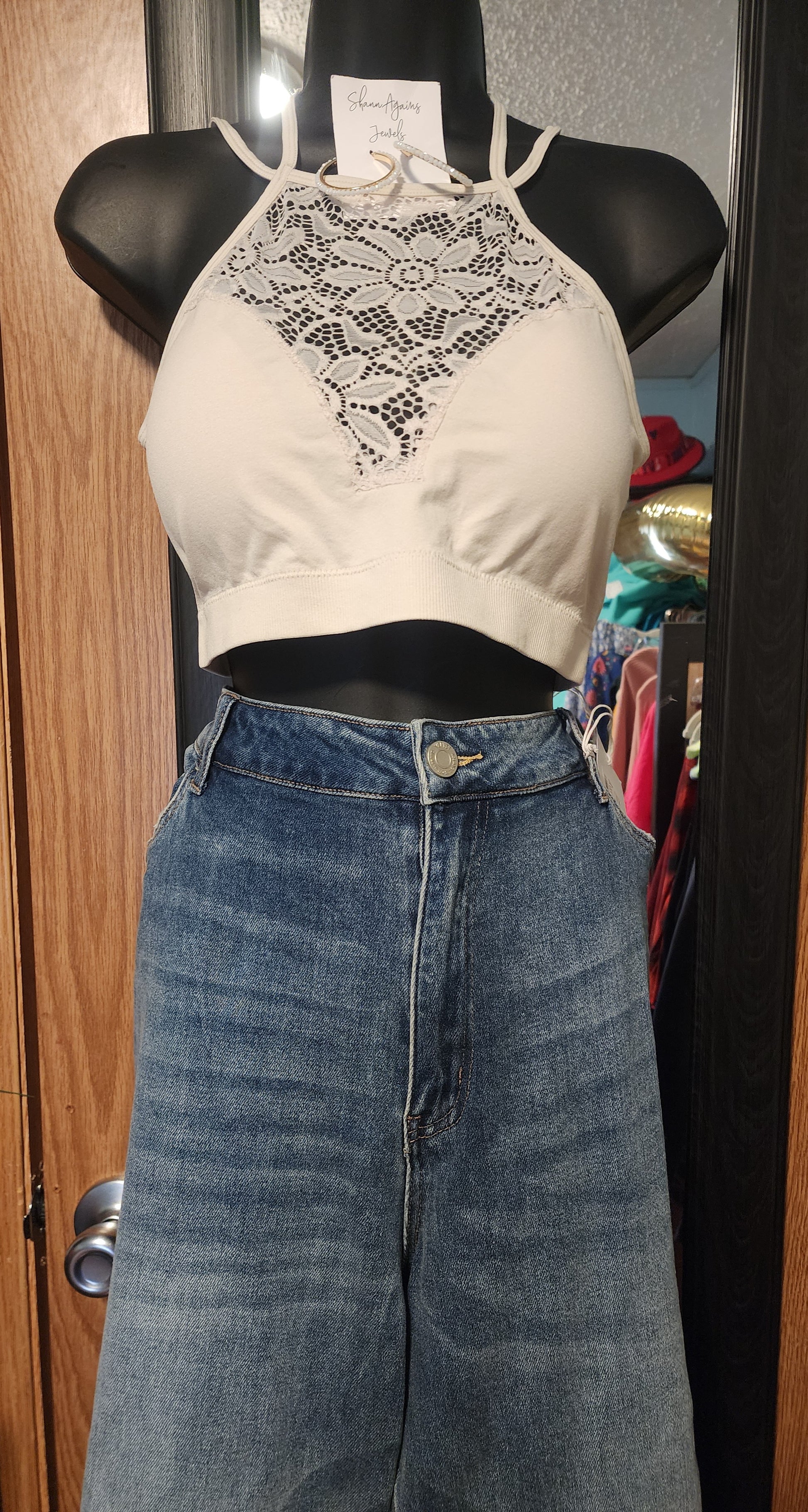 This bralette is a nice off white/ cream color. It's wonderful for layering or as a stand-alone statement piece. So pretty!