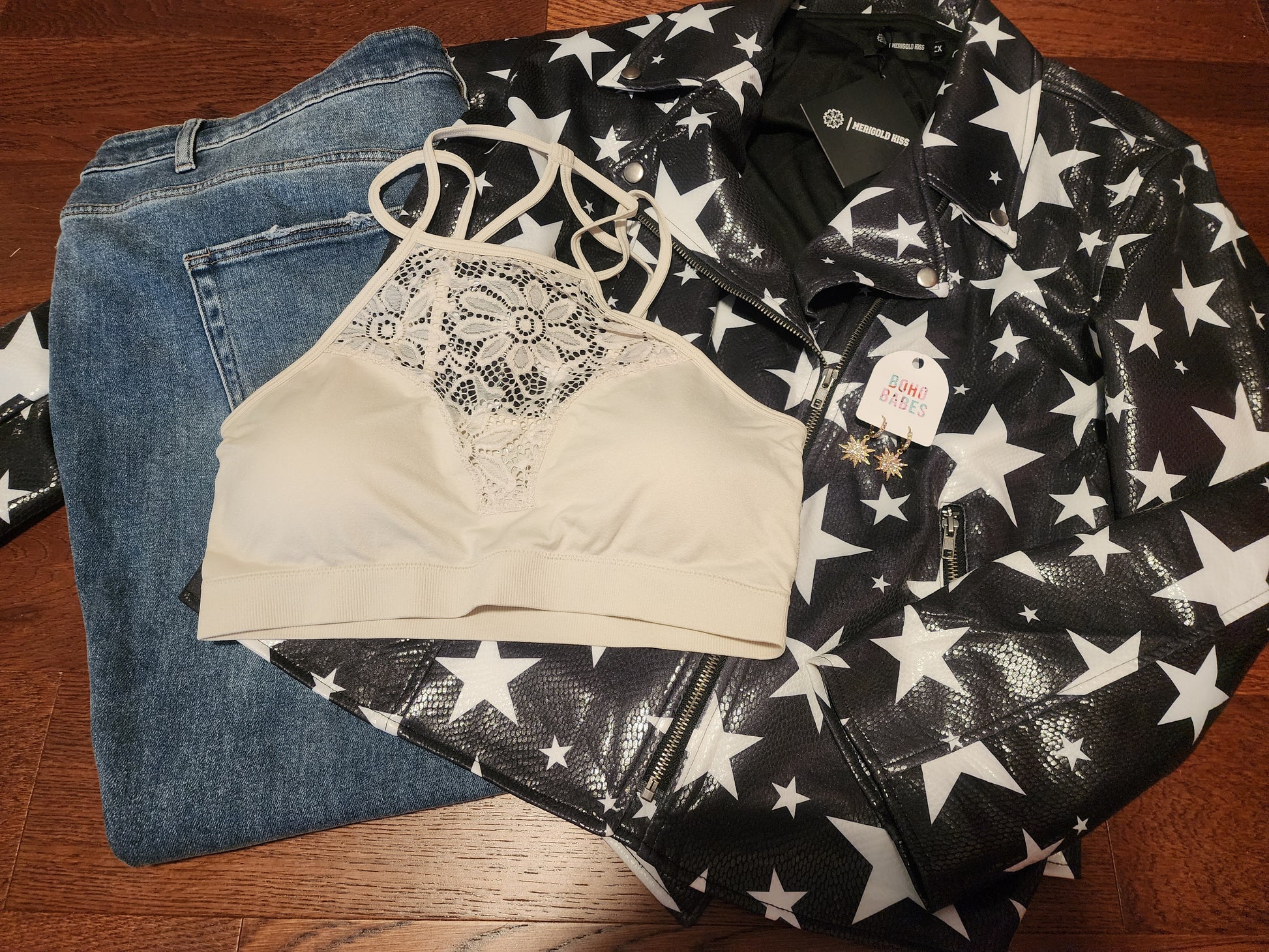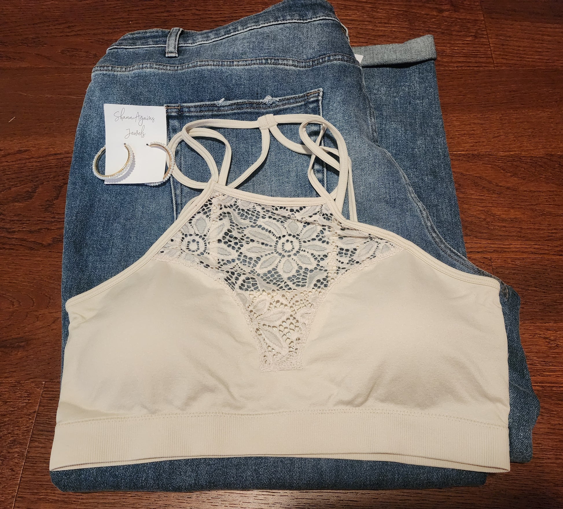"Rachel" Bone White Floral Bralette