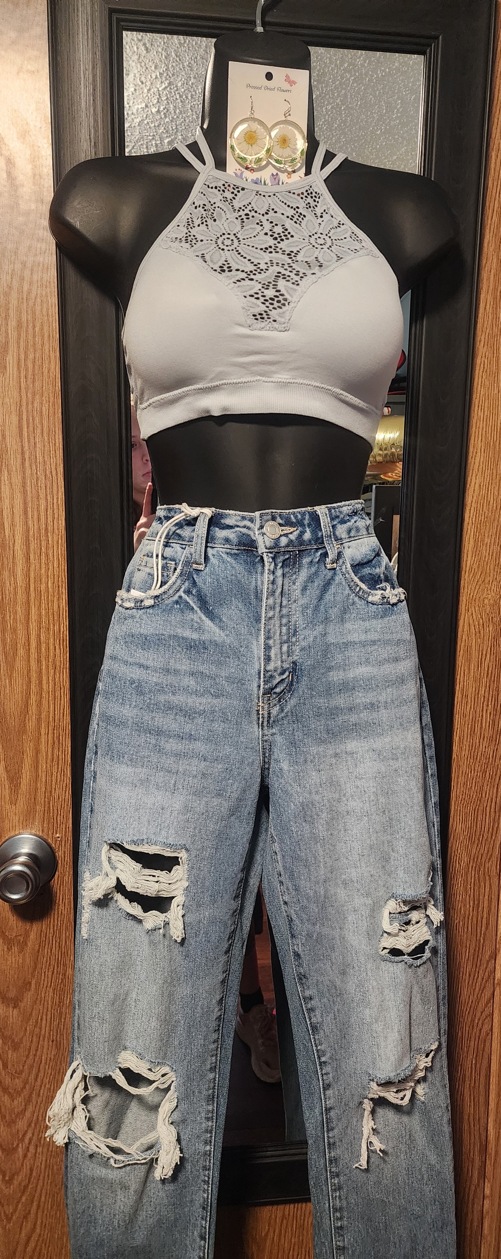 This bralette is so cute, padded (with removable pads), and comfy. It's great to wear as a stand-alone statement piece or to layer under something else. Such a pretty grey color!