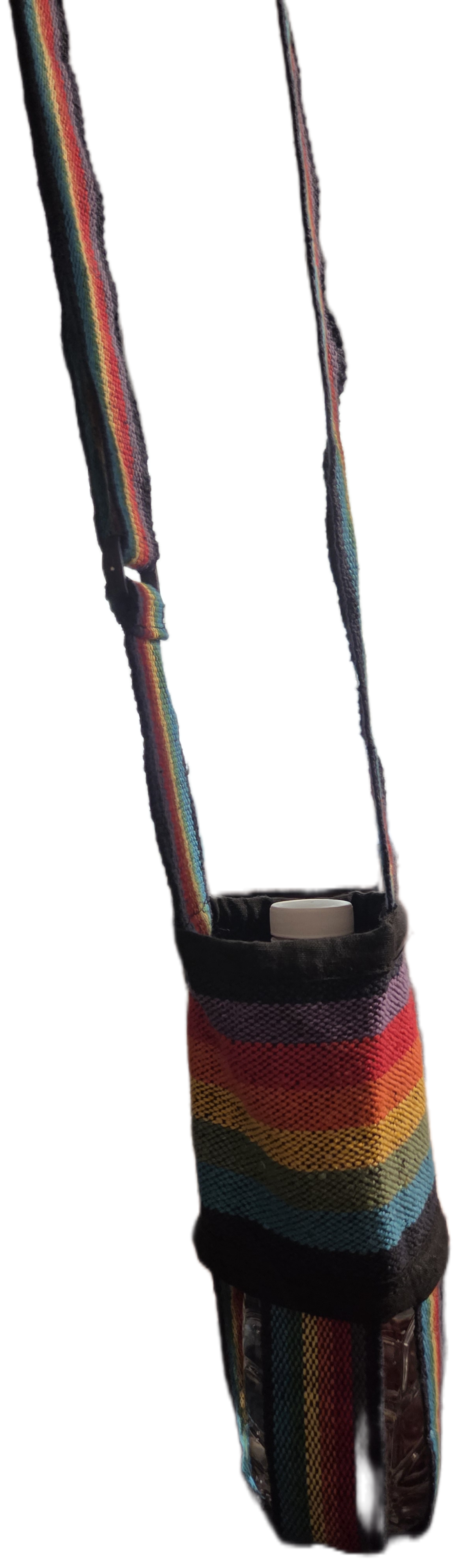 These crossbody bags are perfect for holding your water bottle when you need it on the go or in the heat. These are adjustable and go across you just like a sling bag. They fit any regular sized plastic bottle drink all the way to reusable water bottles. They will not fit any of the large metal cups!